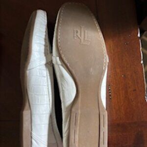 Classic Ralph Lauren Loafers for Woman, Size 12 fits like a size 11 runs small (I wear 11 and they fit me) Croc leather, really good condition Logo on the front gold bar