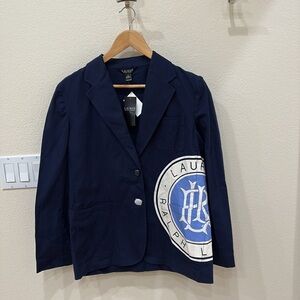 ⭐️Ralph Lauren Logo Stretch Cotton Canvas Navy Blazer—GORGEOUS! Preppy—New with Tags. Size 8.