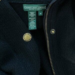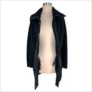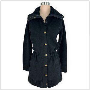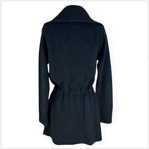 Ralph Lauren Long Black Wool Cinch Waist Cardigan Zip Snap Front Sweater M