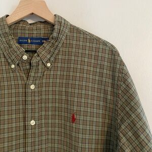 Ralph Lauren Long Sleeve Button Down, 100% Cotton, Green Plaid. XXL.