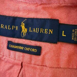 Ralph Lauren Long Sleeve Button Down Chambray Oxford Red Flesh Colored Pony Sz L