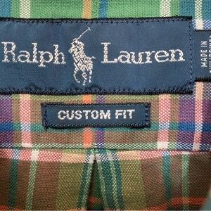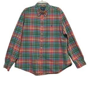 Ralph Lauren Long Sleeve Button Down Custom Fit Green & Red Plaid Shirt Size XL