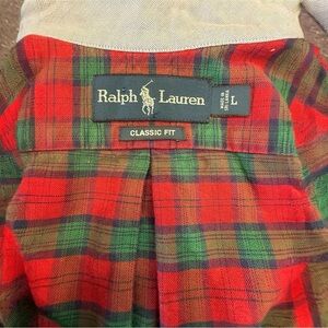 Ralph Lauren long sleeve button down Oxford shirt. Size large. Red and green plaid. In excellent condition.