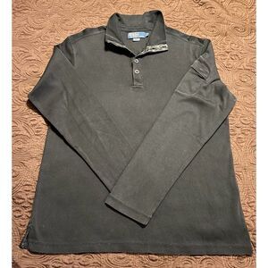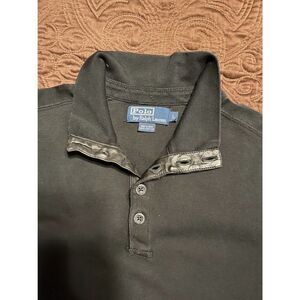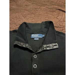 Ralph Lauren Long Sleeve Polo Shirt Full Button Collar Faux Leather Size Large