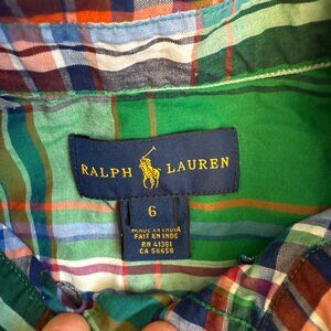 Ralph Lauren Long Sleeve Pony Logo Plaid Button Down Shirt Boys Size 6 Multicolor