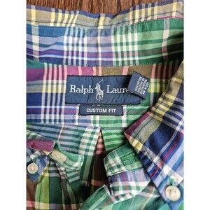 Ralph Lauren Long Sleeve Shirt Mens XXL Blue Green Plaid Classic Fit Red Pony