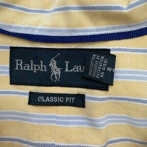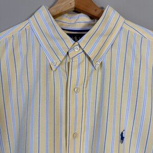 Ralph Lauren Long Sleeve Striped Button Down Shirt Men's XL Yellow Classic Fit