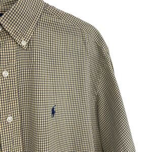 Ralph Lauren Long Sleeve Yellow Navy Check Pattern Button Down Men's Medium
