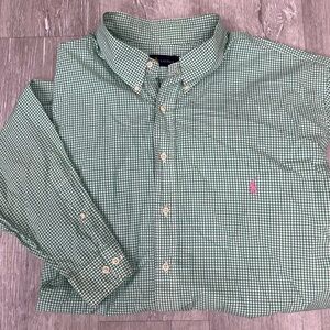 Classic Ralph Lauren size 19 36-37 Tall and Long long sleeve shirt in green gingham. Ideal for casual outings. Offers style and comfort. Gently worn.