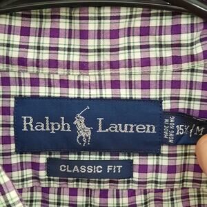 Ralph Lauren M Shirt Men's Purple Green Plaid Classic Fit Cotton Hong Kong