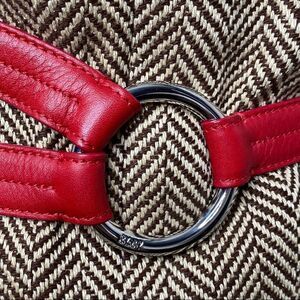 Ralph Lauren Made in Italy Red Calf Leather Silver Tone 2 Buckle Tri-Strap Belt