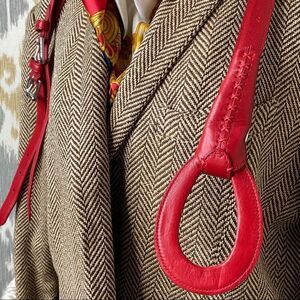 Buttery soft calf skin straps and covered bit, in a vibrant tomato red, interior stamped with serial number, size, logo, and Made in Italy.