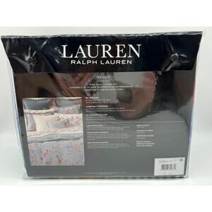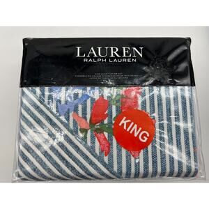 Ralph Lauren Maggie Floral Stripe 3Pc Cotton Duvet Cover Sham Set Blue King NWT.