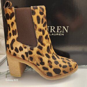 Ralph Lauren " Marianna" Leopard Chelsea boots. NIB. Size: various. Pics are of the 6.5, I have a 10 in the same/condition/box. Boots are perfect, boxes have some damage. Still in original packaging. No rips/stains/scuffs/tears/peeling. Smoke free home. No odors. All offers are welcome. Thank you!