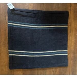 The Mathers throw pillow is cut from breathable linen with a softly textured hand. Its deep navy hue is elevated by yarn-dyed stripes that are pieced together and finished with intricate whipstitching.