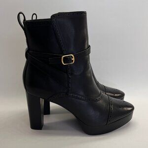 Ralph Lauren McKinsey Bootie Size 11B Black Burnished Leather Platform Heel