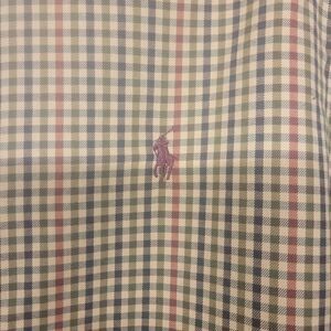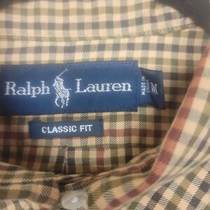 Ralph Lauren Medium Brow Plaid Classic Fit, Long Sleeve Button Down Cotton Polo