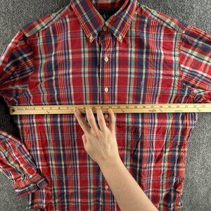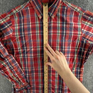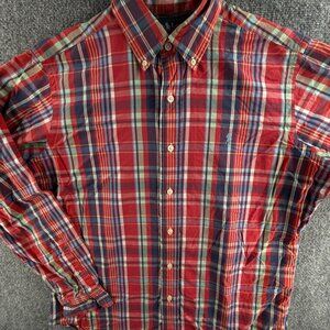 Ralph Lauren Medium Red Plaid Button Down Shirt Long Sleeve Colorful Pony Logo