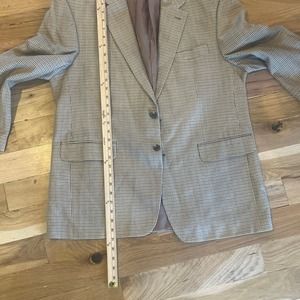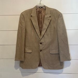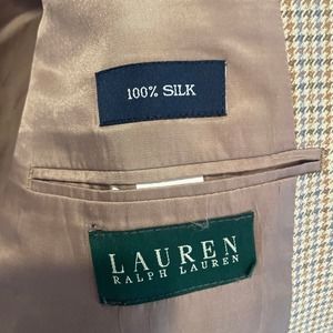 Ralph Lauren Men 44R Sport Coat Blazer Tan Beige Houndstooth Wool/Silk Jacket