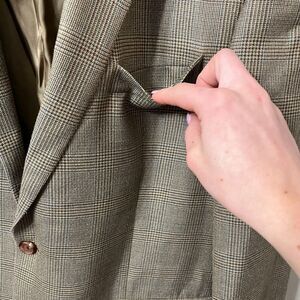Lauren Ralph Lauren Mens Brown Blazer 46R Plaid Dillards Wool & Silk Blend Single Breasted Sport Coat 52% Silk