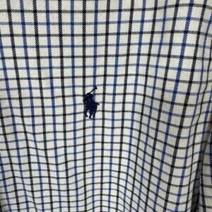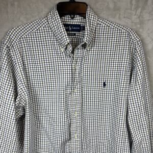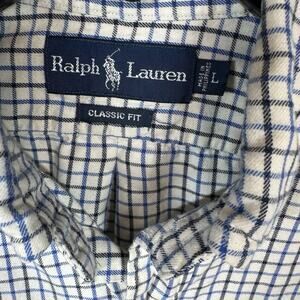 Ralph Lauren Men Shirt Sz L Classic Fit Ivory Plaid Long Sleeve Button Down Pony
