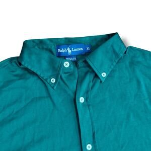 Ralph Lauren Men Size XL Green Long Sleeve 100% Cotton Jersey Button Shirt Pony