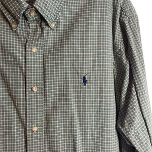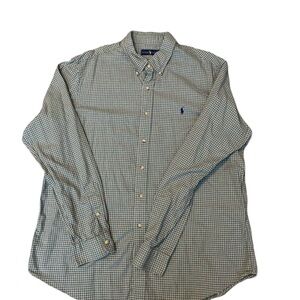 Ralph Lauren Men XL Gingham Small Windowpane Olive Button Down Longsleeve plaid