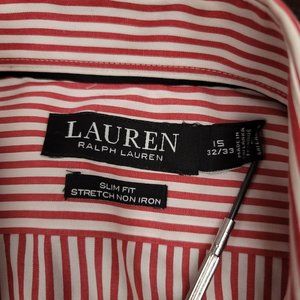 Ralph Lauren Mens 15 32/33 Shirt Black Label Button Up Red Stripe Festive Slim