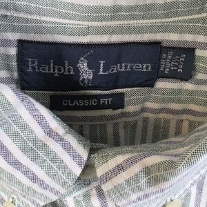 Ralph Lauren Men’s 17.5 34/35 Blue- Green Striped Classic Fit Long Sleeve Shirt