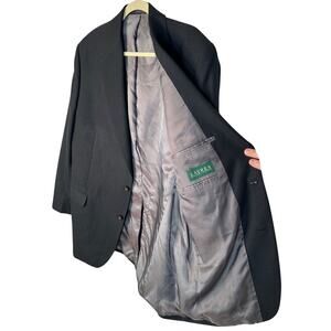 Ralph Lauren Mens 44R 2-Button Blazer 100% Wool Suit Jacket Dark Gray Black EUC