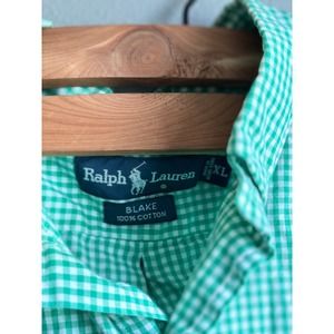 Ralph Lauren Mens Blake Button Up Shirt Short Sleeve Gingham Collared Green XL