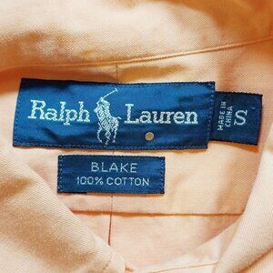 This Ralph Lauren Blake shirt is crafted from 100% cotton, ensuring comfort and durability. Its classic button-down design and peach hue offer a versatile and refined look suitable for various settings, from business to casual. The embroidered logo adds a touch of sophistication.