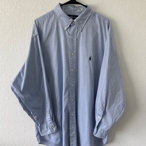 Experience the perfect blend of style and comfort with this Polo by Ralph Lauren blue casual button down shirt. Crafted for a relaxed fit, it features a classic design ideal for everyday wear. Its versatile blue shade makes it a staple piece for any wardrobe.