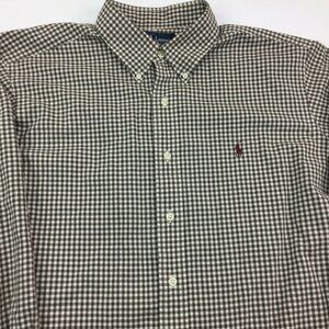 Ralph Lauren Mens Brown Gingham Check Classic Fit Button-Down Shirt Size XL