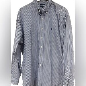 Ralph Lauren Mens Button Down Black Dress Shirt Blue and White Stripe Size XL