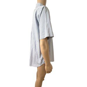 0442B- Ralph Lauren men’s classic fit button down shirt, checkered, white, blue, black. Short sleeve, RN 41381, 100% cotton, left chest blue embroidered logo. Button-down collar. Made in China.