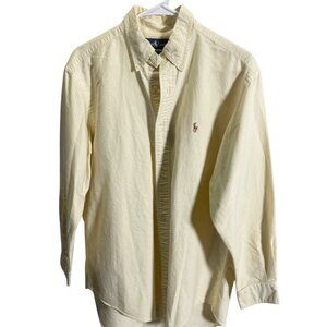 Ralph Lauren Mens Button Down Shirt Yellow Striped Cotton Size L