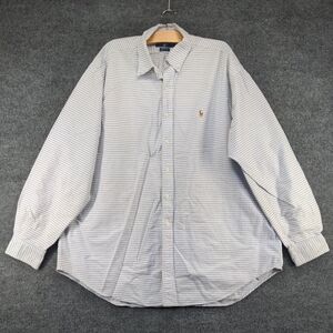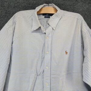 Ralph Lauren Men's Button Front Blake Shirt White Blue 2XL Check Long Sleeve