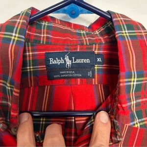 Ralph Lauren Mens Button Front Plaid Dress Shirt Size XL Red Polo EUC. One very light white spot on the inside of the shirt. Smoke free home. Ships fast!