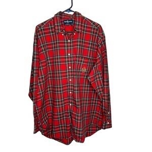 Ralph Lauren Mens Button Front Plaid Dress Shirt Size XL Red Polo EUC