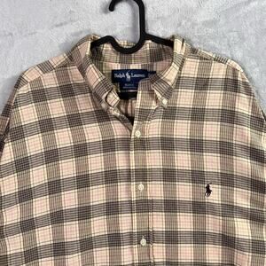 Ralph Lauren Men's Button Up Blake Shirt Size XL Brown Plaid Print 100% Cotton