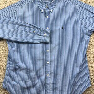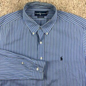 Ralph Lauren Men's Button Up Shirt Classic Fit Blue White Striped 17 36/37