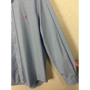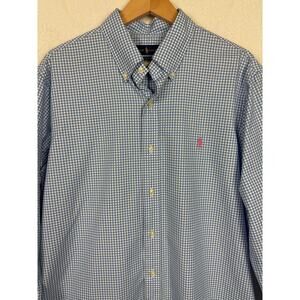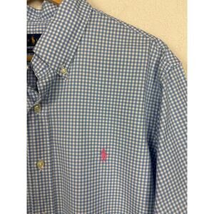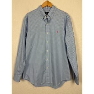 Ralph Lauren Mens Button Up Shirt Sz Large Blue White Gingham Preppy Business