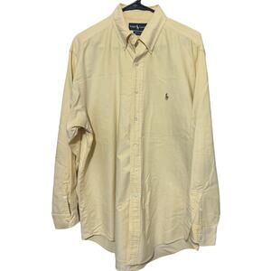 Stylish preppy Ralph Lauren button down shirt. Light butter yellow color. Perfect for casual wear, office or with cowboy boots!