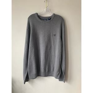 New With Tags steel gray knit sweater made with 100% cotton featuring Chaps logo stitched in blue at the chest.