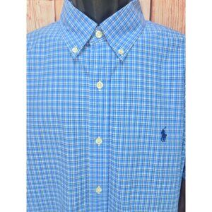 Ralph Lauren Mens Classic Fit Blue Plaid Dress Shirt XL