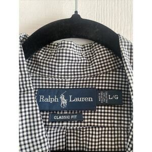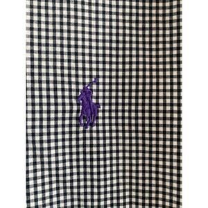 Ralph Lauren Mens Classic Fit Large Black Gingham Button Down Purple Logo