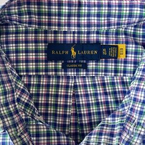 Ralph Lauren Mens Classic Fit Plaid Long Sleeve Button‑Down -