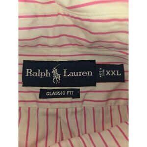 Ralph Lauren Mens Classic Fit XXL Pink & White Striped Button-Down Shirt