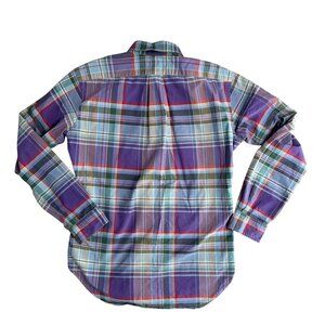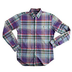 A crisp, plaid Ralph Lauren shirt that exudes timeless elegance. This medium-sized classic fit offers all-day comfort with its soft cotton feel. Perfect for layering or as a standalone piece, the vibrant purple and multicolor hues add sophistication to any wardrobe. Experience the iconic Polo embroidery in every stitch.